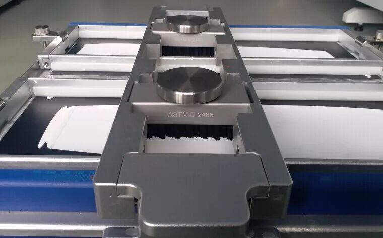 由此,我们也可以推断出仪器工作台的玻璃平板平整度的重要性,部分高端的洗刷仪配备了水平调节装置,可以通过调节四个地脚螺丝来保证工作平台的水平,但如果没有,试验人员就需要试验前检验工作平台的水平。所以,实验人员在开展耐擦洗测试之前,应该仔细检查工作平台及试板的平面度。