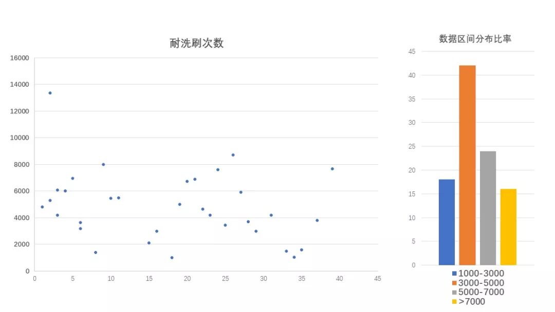另外还必须注意的是:即使是同一刷子,在泡水30min后其承载力,与其连续运行10000次后的承载力也有比较大的差别(我们实验室测试过多个刷子,10000次工作后承载力平均下降30%左右),这样就往往造成后面试验的试板比前面的试板耐擦洗次数多(本次比对测试中,几乎所有实验室的数据第二次测试都比第一次大)。